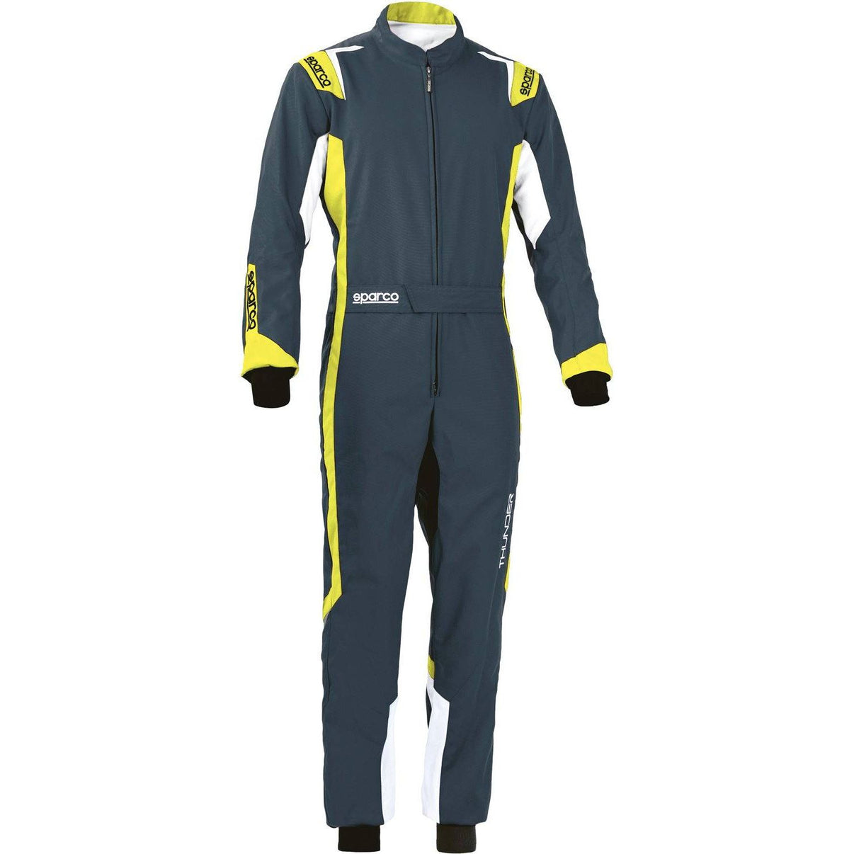 Speciella stretchinsatser möjliggör maximal rörelsefrihet trots den sportiga, kroppsnära passformen. Genomtänkt snittdesign med synlig dragkedja fram. Kontrasterande detaljer samt den förkortade kragen ger overallen ett sportigt och aggressivt uttryck. Sparco kartoverallen THUNDER utmärker sig genom sin särskilt behagliga bärkomfort och optimala passform. Ett absolut köptips för nybörjare, ända upp till professionellt tävlingsbruk.