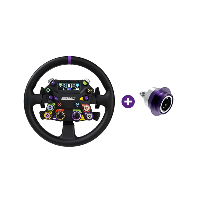 310 APEX fungerar som en nav för öppna hjul och har CONSPITs exklusiva 2,99-tums inbyggda LCD-skärm och kompatibilitet med flera fälgdesigner. Dess helmetallkonstruktion levererar premium hantverk, kombinerat med innovativa kontrollfunktioner som lyfter simracing på nybörjarnivå till nya höjder.